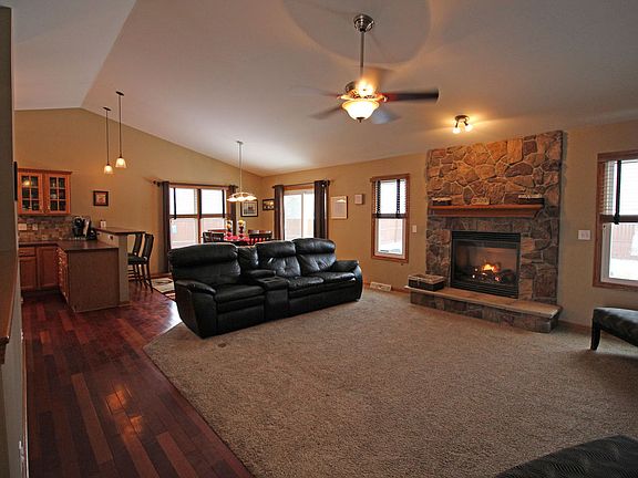 Wait til you see the basement in this lovely 3 bedroom Majestic Hills ranch! 1st things 1st. The 1st floor features an open foyer, Brazilian cherry floors, vaulted great rm. with stone gas fireplace, spacious open kitchen with pantry & dining area, NEW patio door & SS appliances included. 3 nice sized bedrooms with custom closet systems. Master has WI closet, his/her double vanity, soaking tub & separate shower. All baths have granite & tile. NEW WINDOWS THRU-OUT! Professional landscaping, patio & fenced yard. Last but not least... Downstairs you will find an awesome rec rm. very cool theater room has projector & theater seating, 2nd kitchen with granite ,fridge & microwave plus a beautiful 3rd full bath, all making this home's living space MUCH larger than it looks. See it for yourself!