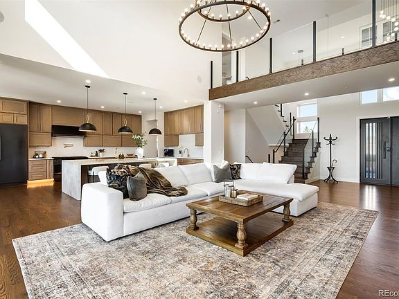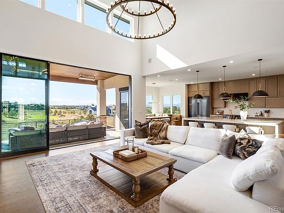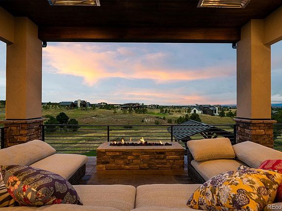 Welcome to this stunning custom residence nestled behind the gates of the prestigious Colorado Golf Club, one of Colorado’s most coveted luxury communities. Set on a quiet cul-de-sac with sweeping views of Pikes Peak and the Front Range, this mountain contemporary masterpiece is a sanctuary of style, comfort, and sophistication. From the moment you arrive, the home’s bold architectural design, four-car garage with custom flooring and EV charging stations, and breathtaking mountain vistas define Colorado living at its finest. Inside, soaring ceilings and floor-to-ceiling glass walls create an airy ambiance and seamless indoor-outdoor flow. The great room centers around a dramatic glass fireplace, opening to a chef’s kitchen adorned with Taj Mahal quartzite countertops, premium appliances, and extensive custom cabinetry. A spacious walk-in pantry offers additional freezer space and abundant shelving for effortless organization. The main level also features a refined home office, a guest suite with an ensuite bath, a designer powder room, elevator access, and a large mudroom and laundry. Upstairs, the primary retreat is a true escape, featuring a private covered balcony with a fireplace, a spa-inspired bath with radiant floors, an expansive walk-in closet, and secondary laundry. A second ensuite bedroom completes this level with equal attention to detail. The walkout lower level is an entertainer’s dream with a full wet bar, family room, game area, gym space, and three additional bedrooms, including one with a Jack-and-Jill bath and another with a private ensuite. Step outside to your private oasis—a full-length deck with multiple fireplaces, an outdoor kitchen, and a covered pavilion with built-in grill and refrigerator—all perfectly framing panoramic mountain views. Experience the ultimate blend of modern luxury and mountain serenity, just minutes from downtown Parker, Castle Rock, and top-rated Douglas County schools.