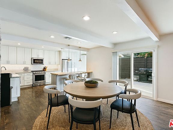 Tucked behind secure gates, this sun-filled single-story residence offers over 1,700 square feet of thoughtfully reimagined living space with three bedrooms, two bathrooms, and a seamless open-concept floor plan designed for modern living. Every detail has been elevated with high-end upgrades throughout. The chef's kitchen is a true showpiece, featuring new stainless-steel appliances, a rare wood-block countertop with a farmhouse sink, sleek engineered marble countertops, a custom tile backsplash, and Grohe fixtures. The heart of the home centers around a dramatic, 360-degree architectural fireplace, a stunning focal point visible from the kitchen, dining area, and expansive family room creating the perfect ambiance for entertaining or cozy nights in. Both bathrooms showcase exceptional craftsmanship with custom tilework, Pental quartz (Carrara marble-style) countertops, and full-size vanities. The primary suite offers a spa-like retreat with dual sinks, a large soaking tub, and direct access to the backyard creating a seamless indoor-outdoor connection ideal for morning coffee or evening relaxation. A built-in linen station with quartz counters anchors the bedroom wing, while the exterior impresses with a beautifully landscaped front lawn enclosed by a wrought-iron fence for privacy and security. The private backyard provides generous space to create a resort-style pool and spa, or to add a custom ADU or guest house (subject to city approval) ideal for additional income, guests, or extended family stays. A large Tuff Shed provides extra storage, while tall hedges create a private, resort-like setting. Perfectly situated close to the well-regarded CSUN campus and within minutes of Costco, Target, Northridge Fashion Center, and an array of dining options, this home captures the essence of the sought-after California lifestyle. Please note that certain images have been virtually staged for illustrative purposes only to simply provide inspiration and demonstrate potential use of the space.