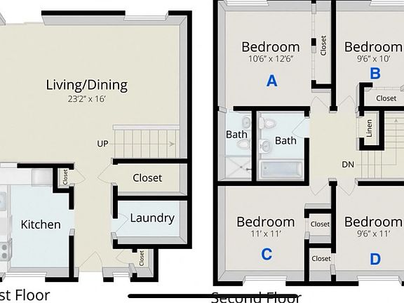 A newly renovated 4-bedroom, 2-bathroom duplex
