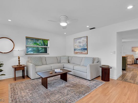 BIG PRICE REDUCTION!! Welcome to your completely updated 3-bedroom, 2-bathroom home, located just minutes from Vanderbilt Beach! NO FLOOD ZONE! NO HOA FEES! BRAND NEW ROOF, HVAC AND WATER HEATER! As you walk through the front door, you'll enter a bright and airy family room that flows seamlessly into the open great room, which includes the living room, dining room, and kitchen. The beach-inspired coastal kitchen features white, and seafoam cabinets paired with wood countertops. Stainless steel appliances and a convenient breakfast bar complete this inviting space. The master bedroom includes an ensuite bathroom for added privacy, while the two additional bedrooms and a shared bathroom are located on the opposite side of the home, perfect for family or guests. Enjoy the spacious lanai and fenced backyard, making this home ideal for families and pets. The one-car garage and long driveway provide ample parking space for up to three vehicles. This centrally located home is within walking distance to several world-renowned popular restaurants, shops, and beautiful first-class beaches, making it an ideal base to explore Naples. This home can be a great winter home for a snowbird or an ideal cash cow for an investor.