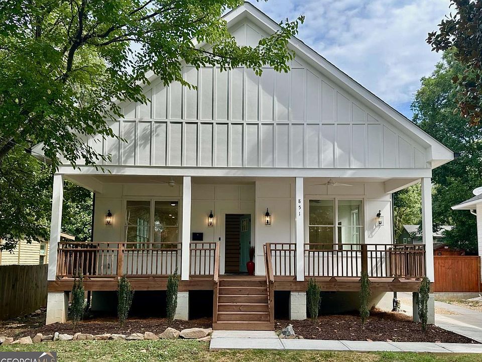 Lowest price per square foot for new construction in the area! Oversized owners level upstairs with massive closet and walk-in shower/soaking tub combo. Loft area with skylights can be a sitting area/office. Main level has secondary primary bedroom and full bath which can double as an in-law/guest space with its own large walk-in closet. Wide open floorplan with real hardwoods throughout and 10 ft ceilings. Main level laundry room with washer and dryer included has separate sink, storage cabinets and tankless water heater for endless hot water. Secondary bedrooms share a jack and jill full bath with floor to ceiling tub/shower tile. Plenty of storage space as well. Spacious front yard for social gatherings with an oversized front porch and covered rear deck. Just a short stroll to the Atlanta BeltLine, Perkerson Park (offering a splash pad, tennis and basketball courts, disc golf, and more), and the vibrant Lee + White development filled with breweries, a food hall, restaurants, retail, and community events-your weekends will never be short on things to do. Capitol View is a tight-knit, front porch kind of neighborhood known for its friendly vibe and engaged community. If you're looking to plant roots and be part of the momentum in one of Atlanta's most exciting neighborhoods-851 Dill Ave is the opportunity you've been waiting for!