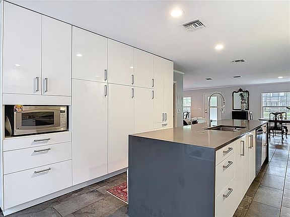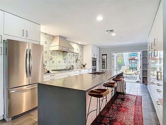 NORWOOD – BEAUTIFULLY UPDATED -.45 ACRE - DETACHED STUDIO - EXQUISITE OUTDOOR LIVING -THIS PROPERTY IS PERFECT! Traditional on the outside and contemporary on the inside this 1875 SF home has 3 bedrooms 2 baths AND a 320 SF detached studio. The outdoor living is extraordinary: a 20’ screened lanai with soaring ceilings and ceiling fan opens to expansive Trex decking, a gazebo, and a waterfall pond, all surrounded by lush landscaping with the fenced yard providing more privacy. Inside, the new kitchen is the showpiece with abundant cabinetry, quartz counters, and a stunning 11' waterfall quartz island that anchors the open-concept layout. The kitchen flows seamlessly into the living, dining, and lanai areas, making it the perfect spot for entertianing or family gatherings. The living and dining areas are 22’ great room with crown molding & recessed lighting. Slate-look porcelain tile flooring runs throughout, and large windows fill every room with light. Spacious bedrooms with a murphy bed in one of the guest rooms adds flexibility. A 16x20 DETACHED STUDIO (320 SF) extends the living space, connected via lanai and decks. With clerestory windows, French and sliding doors, high ceilings, and laminate flooring, it’s an inspiring retreat for work, art, or guests. Practical features add even more value: NEW ROOF (2022), whole-house GENERATOR, NATURAL GAS for cooking, water heating, & Generex generator. There is a SPRINKLER WELL & 8x10 storage shed and termite bond. LOTS OF PARKING with oversized 2-car garage with workshop area (including window unit) and a 2-car Palram carport. Norwood, is an established neighborhood with large lots, beautiful trees, and homes full of individual character and walking distance to Historic Downtown DeLand and Stetson University. Deland won Best Mainstreet USA in 2017. With events all year long and great restaurants it is full of charm. Will you spend your time inside this beautifull home or outside in the exquisite lanai, decks, and studio? Either way, this property delivers the lifestyle you’ve been searching for.