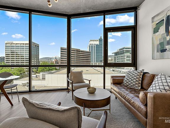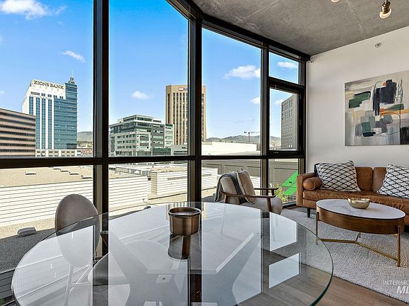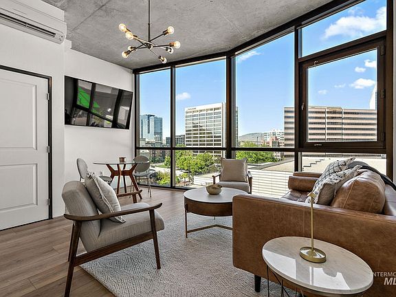 Rare opportunity to own in the coveted Aspen Lofts—Downtown Boise’s premier high-rise residence. This Grand Studio, with separate sleeping area, & expansive views of Downtown Boise, including a direct, unobstructed view of the State Capitol and foothills from the 6th floor. This recently renovated condo is in pristine condition with all-new flooring & fresh paint, a brand-new fully tiled walk-in shower with updated fixtures, & tile backsplash in the kitchen. This unit includes high end features such as remote-operated window coverings, granite countertops, and a built-in Murphy bed system which includes a full office setup, cupboards, and a dresser—maximizing both space & functionality. The open-concept layout is complemented by floor-to-ceiling windows and 10' ceilings. Utilize the private, secure storage in the basement—perfect for bikes, direct floor access to monthly parking, & an outdoor pet relief area. HOA covers water, sewer, garbage, internet, building security, exterior maint, and window cleaning.