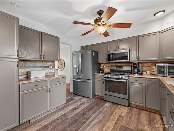 - Features: Kitchen (Island), Flooring (Wood Laminate), Window Treatments (Blinds)