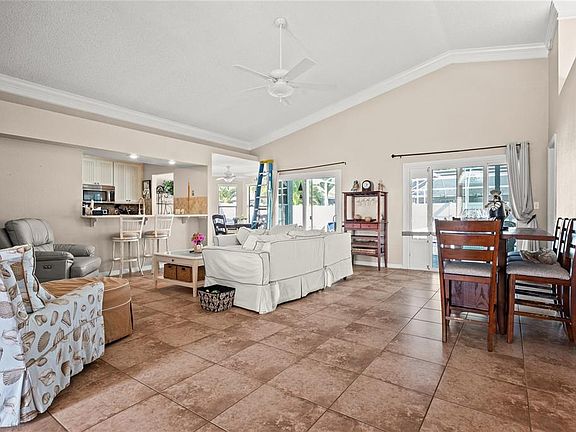 Welcome to resort-style living in the highly sought-after Crystal Beach Estates, with no HOA dues or flood ins. required! This 3-bedroom, 3-bathroom with its coastal charm, is located on a quiet cul-de-sac in an exceptional location. Step through the custom front doors and be greeted by high vaulted ceilings, an open-concept layout, and an abundance of natural light. Spacious and welcoming floor plan seamlessly connects the living, dining, and kitchen areas, creating an ideal space for entertaining. Kitchen, features custom ranch-style cabinets and a cozy kitchen nook. The master suite, with slighted, vaulted ceiling, is complete with a walk-in closet and sliding glass doors that open directly to outdoor pool area. Ample storage throughout, a washer/dryer, and double sliding glass doors that creates perfect indoor-outdoor living. 5-ton HVAC system (2021); roof (2006), water heater (2006). Backyard oasis comes with a heated Chlorine pool (with an option to convert to saltwater). The outdoor entertainment area comes with a separate full cabana bathroom. Perfect for pool days, gatherings, and entertaining, this home is an entertainer’s paradise. The exceptional location puts you just minutes from Honeymoon Island State Park, vibrant shopping, and top-rated restaurants, offering the best of Palm Harbor’s coastal lifestyle. Don’t miss this rare opportunity to own a move-in-ready home in Crystal Beach Estates with no HOA fees.