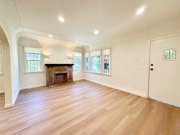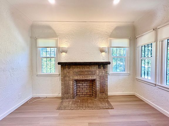 Decorative fireplacePrivate backyard oasisModern tilePlenty of windowsWalk-in showerBuilt-in cabinetsRecessed lighting