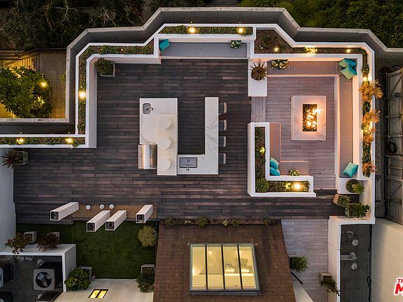 This expansive and luxurious 4 bedroom, 5 bath, 2,475 sq. ft. PENTHOUSE unit with 1,310 sq ft PRIVATE ROOFTOP DECK has been meticulously remodeled with the highest quality finishes. Located in prime, central West Hollywood, close to Melrose Place and numerous high end restaurants and boutique shopping. This unit is the largest floor plan in the building and the private rooftop lounge enjoys sweeping, unobstructed views of the Hollywood Hills and includes a sunken fire pit with abundant seating, outdoor kitchen with barbecue and bar seating, wine fridge, pet area with turf, space for a dining table, built-in planters with drought tolerant plants, uplighting and a drip line. The interior space features Fleetwood double-paned windows and sliding doors plus a vaulted ceiling with large skylight which fills the unit with light throughout the day. High-end Chef's kitchen with eat-in bar, Bosch and Thermador appliances, Heath Ceramics backsplash, Caesarstone countertops and ergonomic cork flooring. The primary bedroom suite has custom walnut closet with concealed laundry leading to gorgeously tiled primary bath featuring Ann Sacks tilework, soaking tub, shower and dual vanity. Additional fixtures include Grohe faucets, George Nelson lighting, 50+ dimmable recessed lighting. Upper bedroom loft features spectacular Hollywood Hills views. The building has wide and updated air conditioned hallways, large hot tub, gym, and 2 side-by-side parking spaces for this unit plus guest parking.