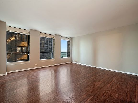 This spacious studio apartment offers a partial lake view and is located in a full-amenity high-rise just a few blocks north of Northwestern University and its hospitals. The thoughtfully designed layout provides enough space for a bed, couch, desk, and dining area. Large closets and extensive kitchen cabinetry offer exceptional storage throughout.