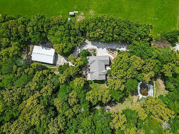 Your Country Dream Awaits! Experience peaceful country living on approx 7.75 acres of lush grass and wooded beauty! BRAND NEW ROOF!!! Designed with large families in mind, this custom-built home offers two complete living spaces—one on the main level and another in the finished walkout basement. The main floor is filled with natural light and features hardwood and tile floors that flow seamlessly throughout. The custom kitchen offers pull-out drawers, decorative fixtures, and stylish niches, while the stunning home office boasts soaring ceilings and Palladian windows. The primary suite includes a private bath, walk-in closet, and tiled shower, and a second bedroom on the main level features its own full bath with a tub. Upstairs, a third bedroom with vaulted ceilings provides a cozy retreat. Laundry/mud room and a half bath with raised vessel sink also on the main floor. The finished walkout basement adds even more living space and lots of light with a full kitchen and island, family room, two additional bedrooms, a storm shelter, and 1.1 baths. This home is wheelchair accessible, featuring an oversized roll-in shower in the primary lower-level bath, and an elevator shaft is already in place—wired and reinforced for future installation. Step outside to a peaceful setting surrounded by mature trees, providing shade and relaxation on the back patio. The property also features a spacious 40' x 60' outbuilding with electricity and a bath stub-out, plus an additional 10' x 20' storage shed for all your needs. On the south side, you’ll find a wide open grass field—perfect for recreation, gardening, or simply enjoying the extra space. The sale includes two parcels, aerial provided. Shown by appointment only, this property combines space, functionality, and country charm in one perfect package!