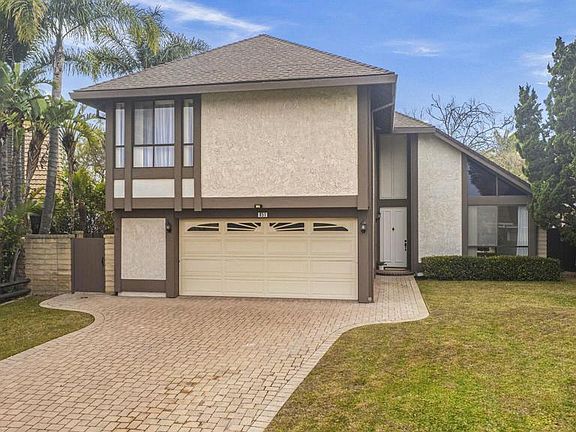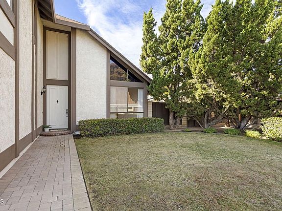 Nestled in the desirable Mission Oaks area of Camarillo, this wonderful two-story home offers 2,032 square feet of living space on an impressive 8,712-square-foot lot. Situated on a small quiet cul-de-sac, this property is perfect for a large household or anyone seeking a peaceful retreat with easy access to local amenities. Step into the spacious living and dining areas, featuring high vaulted ceilings that create an open and airy atmosphere. The kitchen boasts a cozy eating area, granite countertops, a window to the backyard, and stainless appliances, including a gas stovetop, oven, and microwave. Adjacent to the kitchen, the family area is a warm and inviting space with a classic brick fireplace and a wet bar, perfect for entertaining. Upstairs, the primary suite offers a private balcony with views through the trees, a walk-in closet, and a dedicated vanity area. Three additional bedrooms, a guest bathroom, and a hallway walk-in closet provide ample space for family and guests. The expansive backyard is an entertainer's dream, with plenty of space to create your ideal outdoor oasis. With room for a pool, sports court, and garden--the possibilities are endless. The direct access two-car garage and driveway offer convenient parking for multiple vehicles. The air conditioning provides comfort all year round. Located close to excellent schools, a neighborhood park, shopping and restaurants, this home combines tranquility and convenience.