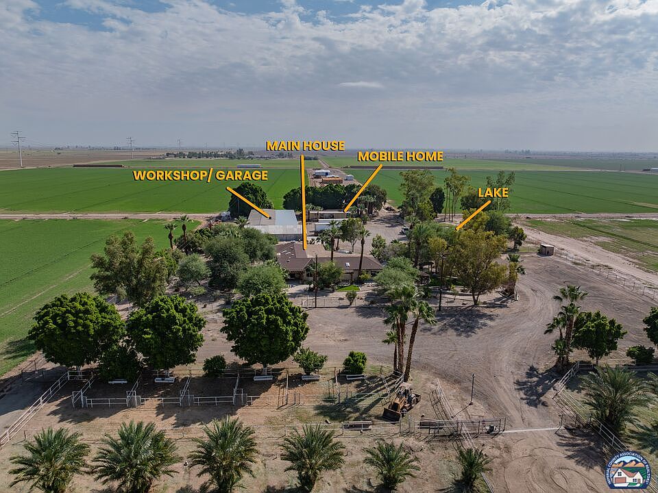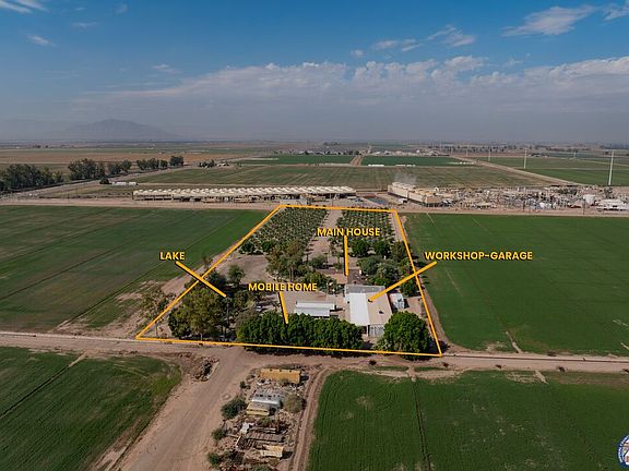 Welcome to 851 Pitzer Rd, an extraordinary 10-acre gated ranch estate that perfectly blends peaceful country living with modern convenience and business potential. From the moment you enter the private gated drive lined with palm trees, you'll feel the tranquility, privacy, and pride of ownership this one-of-a-kind property offers. Whether you're a farmer, entrepreneur, or someone seeking space to live, work, and unwind-this property delivers the ultimate Imperial Valley lifestyle. The main residence, approximately 2,679 sq. ft., is beautifully maintained and thoughtfully designed for comfort and functionality. The bright, open layout welcomes you with expansive living areas, tile flooring throughout, and a cozy brick fireplace that anchors the family room. The spacious kitchen offers a large center island, generous cabinetry, and open views into the great room- creating the perfect setting for entertaining family and friends. Down the hallway, you'll find a bonus great room with custom built-ins, dual ceiling fans, French doors, and a large picture window overlooking the landscaped yard- a perfect retreat for gatherings, relaxation, or media space. Adjacent to the great room sits an oversized laundry room with abundant cabinetry and storage, plus a separate office/flex room, ideal for a home business, craft space, or remote work setup. The bedroom wing features spacious rooms with plenty of natural light. The primary suite serves as a true retreat, complete with a soaking tub, separate walk-in shower, dual sinks, and a serene view of the surrounding acreage. Every detail of this home has been designed with comfort and practicality in mind.Adding tremendous versatility to the property is the detached 3-bedroom, 2-bath mobile home (approx. 924 sq. ft.), complete with a covered carport, ramp entry, and shaded patio area surrounded by mature palms. This private guest unit offers the perfect setup for extended family, guests, or rental income-making it ideal for multi-generational living or investment use. For those who appreciate space to work and create, this property includes a massive steel-frame workshop featuring multiple roll-up doors, high ceilings, and an attached office with a restroom. Whether you're storing farm equipment, operating a small business, or pursuing mechanical or agricultural projects, this structure provides unmatched flexibility and utility. Covered bays add even more space for tractors, RVs, or heavy equipment. Step outside and discover the heart of this property -10 fully fenced and gated acres, beautifully landscaped and thoughtfully designed for enjoyment and productivity. A private lake surrounded by mature trees provides the perfect spot to relax, fish, or unwind at sunset. Multiple shaded gazebos and turf courtyards offer inviting spaces for outdoor entertaining or peaceful retreat. The palm-lined circular driveway and paved areas provide easy access and abundant parking for large vehicles, trailers, or guests. Separate zones across the acreage can be tailored for livestock, agriculture, or recreation, giving this property endless potential. Conveniently located just minutes from El Centro, Imperial, and major routes, this estate offers the rare combination of rural serenity and city accessibility. Whether you're envisioning a family ranch, an income-producing estate, or a business-friendly property with plenty of room to grow- 851 Pitzer Rd offers it all.Enjoy the best of both worlds- country charm and modern productivity-in this remarkable Heber ranch estate. Properties of this quality and versatility are rarely available. Enjoy the best of both worlds-country charm and modern productivity - this truly expectational ranch estate, where every acre reflects pride, purpose, and possibility.