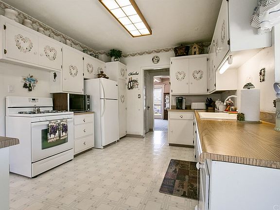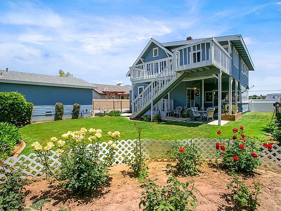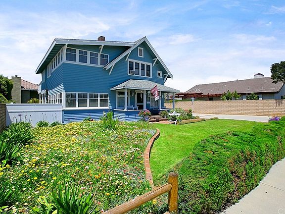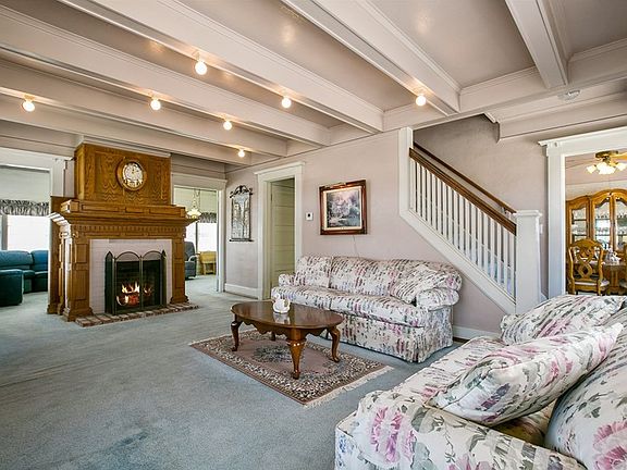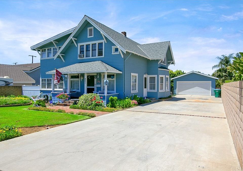 BEAUTIFUL CRAFTSMAN HOME W/OPEN FLOOR PLAN & RV PARKING. Excellent curb appeal offers a green front lawn w/planters, colorful flowers, a concrete driveway w/brick ribbon accenting, a brick walkway leading to the covered front porch & entry. Through the front door you'll arrive into a spacious family room w/a fireplace offering detailed woodwork, exposed beam ceilings, carpeted floors & open to a spacious den. A den w/wall of windows, paneled walls & ceilings, crown molding, carpeted floors, interior french doors & backyard access. A spacious kitchen w/classic white cabinetry, white appliances, durable flooring, wood-like countertops, an eating area & a slider to the backyard. There is a laundry area off the back side of kitchen & remodeled bath. A formal dining room w/wainscoting, detailed door casing & multiple windows. Upstairs you'll find all four bedrooms & access to a balcony. Master bdrm w/carpeted floors, two closets & access to an oversized retreat offering more closet space & direct access to the upstairs full bath. Bathroom w/claw foot tub, vanity, durable floors & access to the hallway as well as master bath. Three additional spacious bedrooms, one w/direct access to the balcony. Backyard offers a covered patio, stairway up to the balcony, plenty of green lawn, a rose garden, brick planter, block walls, a fenced area from driveway, a detached two car garage & more. The home also offers a whole house fan & full basement. Walk to Ramona Middle & Allen Ave Elementary.
