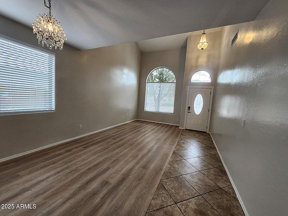 Gorgeous 4 bed 2.5 bath home with a loft in gated Mesa community. Fresh paint, vinyl plank flooring and carpet in all the right places! 20ft vaulted entry over the family room& formal dining room w/overlooking loft perfect for an office space. 9ft ceilings and tons of windows with bright natural lighting throughout. Open kitchen with granite counters and large island. All stainless steel appliances included. Eat-in kitchen w large pantry. Upgraded lighting fixtures throughout.. Enjoy the picturesque park view from the large covered patio. The spacious primary suite features vaulted ceilings, walk-in closet and shower, garden tub and private toilet. Ceiling fans and blinds throughout. Washer and dryer included. Pets welcome! Backyard is great for entertaining! Extended back patio and lar RV gate. Large backyard. Doggie door. Backyard overlooks community Park. Minutes from Hwy 60 and Loop 202.Walking distance to Skyline High School.