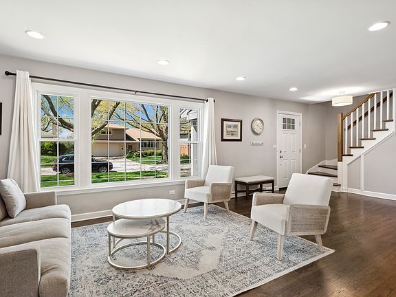 Nestled in the highly desirable Blue Ribbon Jefferson school neighborhood of southeast Elmhurst, this meticulously renovated 3-bedroom, 2.5-bathroom home offers modern comfort and thoughtful updates throughout. Upon entering the new front door, you'll be greeted by a spacious living room showcasing beautiful hardwood floors and new windows that flood the space with natural light. The home features a separate dining room perfect for entertaining, while the well-appointed kitchen boasts stainless steel appliances, a convenient breakfast bar, and an eating area. A sliding glass door from the kitchen opens to a patio, ideal for outdoor grilling and dining. The generous family room centers around a cozy fireplace and provides access through sliding glass doors to the fully fenced and professionally landscaped large backyard-perfect for relaxation and recreation. The primary bedroom features an updated en-suite master bathroom. Two additional well-sized bedrooms share a beautifully renovated full bathroom. Finished lower level with new carpeting. Convenient first-floor laundry room. Attached two-car garage for secure parking and storage. This exceptional home is walking distance to Butterfield Park with quick access to Jefferson (K-5),Visitation (PreK-8),Smalley Pool/Park,The IL Prairie Path, the York/Vallette Business District, to all Chicagoland highways (88/290/294) and Oak Brook Mall.