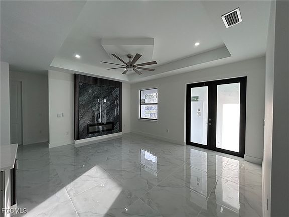 Don't miss out on this 2025 turnkey Southwest Florida home accented with porcelain tile all throughout, coffered ceilings, and modern finishes. The property is conveniently located near SR-82 with a canal view in the backyard. This stunning space boasts a fully custom kitchen complete with quartz countertops, custom made cabinetry, and a range hood. New stainless steel kitchen appliances, as well as a washer and dryer, will be installed soon. The beautiful living room features a a remote-controlled fireplace and marble style accent wall. Enjoy the spaciousness of 3 bedrooms and 3 baths. Other features include an outdoor kitchen area, impact resistant windows, and sprinklers. The seller is willing to negotiate the price and contribute to the buyer's closing costs. Your dream home awaits, schedule your showing today!