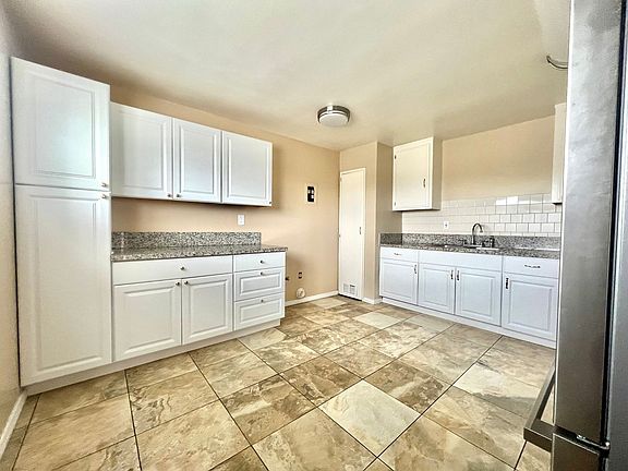 * L A City Section 8 voucher holders are encouraged to apply ** Enjoy this recently upgraded, upstairs two-bedroom apartment of a triplex in San Pedro with a view of the Vincent Thomas Bridge and the Terminal Island ports. The recently remodeled kitchen provides granite countertops, abundant wall and base cabinet storage, pull-out drawers, two six-foot-tall pantries, and a dual stainless steel sink. A gas stove with a control board, a newer refrigerator with glass shelving and a pull-out bottom freezer, ceramic tile flooring, and more! There is an eat-in area of the kitchen with an east-facing window providing shipping port views and the living room window. Carpeted living room and bedrooms. Wood faux blinds in all windows. Matching flush mount ceiling fans in both bedrooms. The bathroom provides a shower over the bathtub, tiled shower walls, and a new toilet. There are separate full-size washer and dryer hook-ups for your own machines. There is one off-street parking space provided. This is a non-smoking / no-pet property.