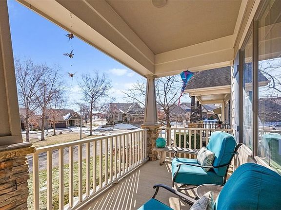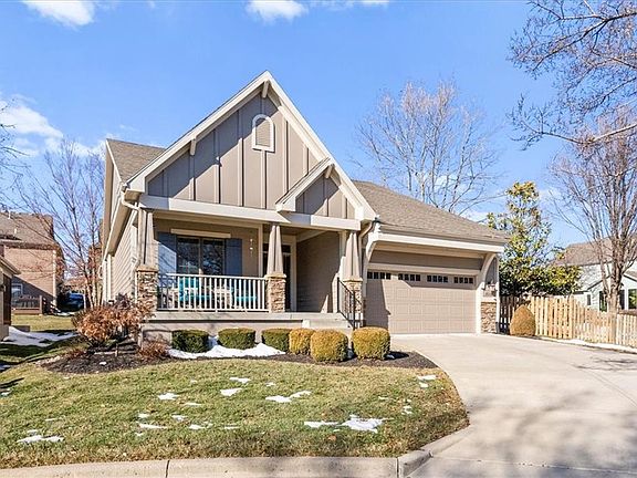 Beautiful, meticulously cared for and maintenance-provided reverse 1.5 story on the best lot in the neighborhood! Nestled at the end of a quiet cul-de-sac and bordered by trees for extra privacy, you will love this peaceful oasis just minutes from Lenexa City Center and Shawnee Mission Park. Charming curb appeal greets you with craftsman-style stone and wood columns bordering the quaint front porch. Inside, a wide open floor plan with hardwood floors throughout the main living areas, granite counters, wide trim, large windows, and so many lovely upgrades will have you falling in love with every detail. The expansive kitchen is complete with a huge walk-in pantry with THREE walls of shelves, and opens up beautifully to the dining area and living room, as well as offering views of the tranquil screened-in porch. The spacious living room features a cozy stone fireplace to keep you warm during these chilly midwest winters, and the easy flow of the main level is absolutely perfect for relaxing with family and friends. Two bedrooms and two full baths on the main level include a sprawling primary suite, complete with a large jetted tub, separate shower, huge double vanity, and a walk-in closet. Downstairs, a second spacious living area features a kitchenette and endless possibilities for creating a dream home theatre, game room, speakeasy bar, or anything else you can imagine! A third bedroom, third full bath, and a massive fourth non-conforming bedroom offer more than enough space for family, storage, a home office, a workout room, or whatever best suits your lifestyle. Outside, the beautiful screened-in porch is a space you can enjoy nearly all year long as it provides shade from the sun and plenty of room for relaxing. Welcome home!