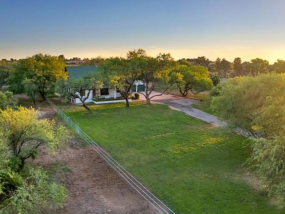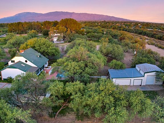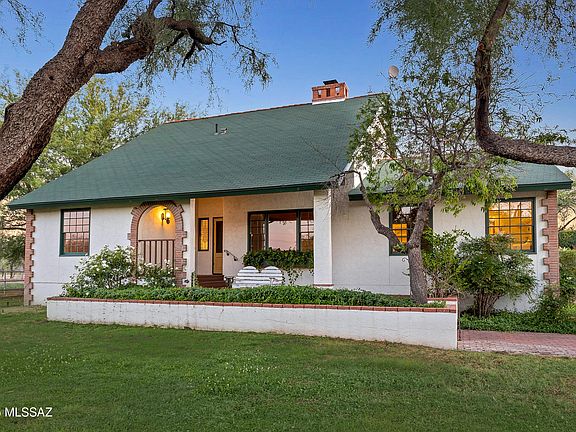 Tucked in prestigious Tanque Verde Country Estates, this charming farmhouse sits on a rare 4-acre parcel with a private well and grandfathered irrigation rights ideal for lush pastures, trees, and gardens. Horse-ready with two stables and direct access to scenic trails via the Tanque Verde Wash. A classic hay barn has been converted into a five-car garage with flexible use. The warm, two-story home features 5 beds, 3 baths, a country kitchen, dining area, and a double-sided fireplace. A lofted library adds a peaceful retreat.The backyard features a pool, a relaxing spa, and a charming gazebo for outdoor enjoyment. With equestrian amenities, secure water, and adaptable space, this is a unique opportunity to own a functional estate in a coveted location.