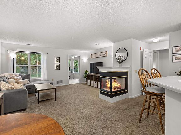 Bright and inviting 1-bedroom condo with sunroom surrounded by windows and serene views of the woods. Enjoy a cozy fireplace, walk-in pantry, and spacious bedroom with walk-in closet. Convenient in-unit washer and dryer plus a dedicated storage unit. Includes one parking space. Peaceful first-floor setting offers easy access and a relaxing connection to nature?perfect for low-maintenance living.