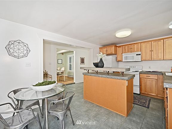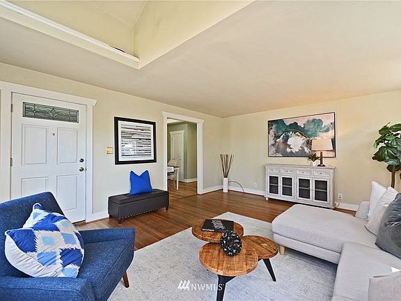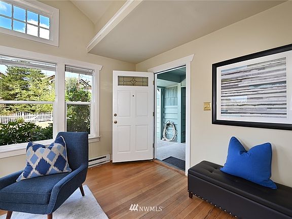 Charm abounds in this Green Lake home. Large light filled living and dining room with plenty of space for hosting. Open kitchen with concrete counters and breakfast nook flows to private back patio space, perfect for BBQ. Two bedrooms plus a great work from home office. 2 bathrooms. Ample off street parking with 1 car garage and long driveway (can easily hold 3 cars). Large sunlit front yard. Hardwood floors, privacy, natural light.
