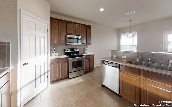 Beautiful single story home just 5 minutes from Randolph AFB and Loop 1604. Easy commute to I-10 or I-35 and Ft Sam Houston. Grand entry with soaring ceilings, very open floor plan. Large bedrooms and indoor laundry, huge separate dining room and master suite. Great for entertaining or a family home. Backs to school property so there will never be a back neighbor. Very high-end water softener and refrigerator included. Very lightly lived in, shows like a brand new home. Must see to appreciate!