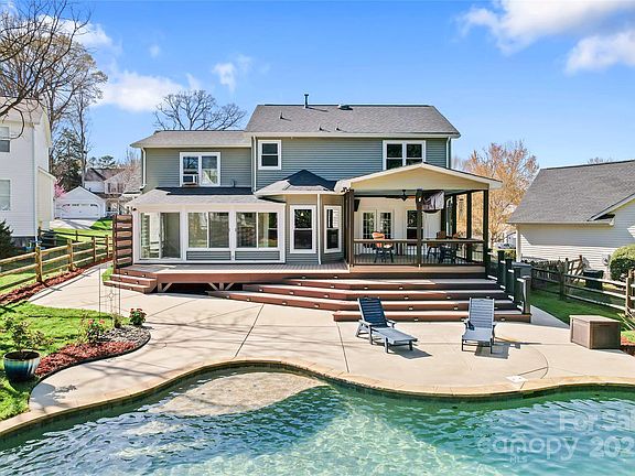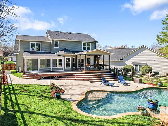 POOL, SUNROOM, PRIME LOCATION in HUNTERSVILLE, MOVE-IN READY; This meticulously maintained home is perfect for entertaining. Enjoy a vibrant backyard featuring an in-ground pool, a covered back deck, and an upgraded kitchen with tall cabinets, an island, and granite countertops. This property boasts three bedrooms along with a SPACIOUS BONUS ROOM on the upper floor. The living room impresses with high ceilings and a gas fireplace, complemented by a dining room, breakfast area and a sitting room/office with French doors for added privacy. UPGRADES include: 2021 siding and windows. HVAC, furnace, tankless water heater, LVP flooring and new roof installed in 2018. Community pool, playground and access to Torrence Creek Greenway. Nestled in the tranquility of a cul-de-sac, this home is just 5 minutes from Birkdale Village, restaurants, shops, and Hwy 77, and only 20 minutes from Uptown Charlotte. Come take a look; this home is READY FOR YOU!