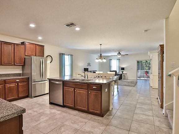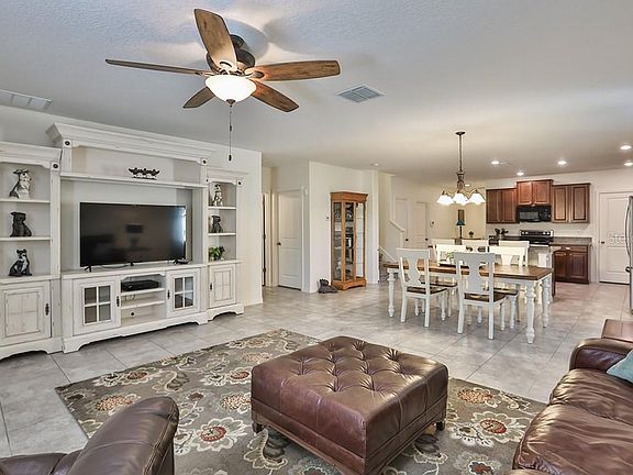 Priced below replacement and only two years old on a premium home site and over $25,000 in upgrades: Why buy new and have to save up to install a beautiful Vinyl Fence, add on a 12' x 24' screened Lanai and purchase a 10' X 15' Storage Shed. This home is like new but better! Offering 5 large bedrooms, 2.5 baths, and lots of upgrades! As you enter, you will find an office or formal dining room, then open kitchen and family room combo! Kitchen features a huge island with sink, stainless steel appliances, and large pantry. Master suite is downstairs and upgraded with laminate wood floors, large bathroom w/dual sinks, huge stand up shower, and walk in closet! The upstairs is the perfect space for kids, offering a bonus room and spacious bedrooms! Best part is the patio, fully fenced yard, storage shed, plenty of yard space and amazing pond views. This home is located in Cypress Creek, offering amazing amenities, resort style pool, walking trails, playgrounds and more! Call for more info!
