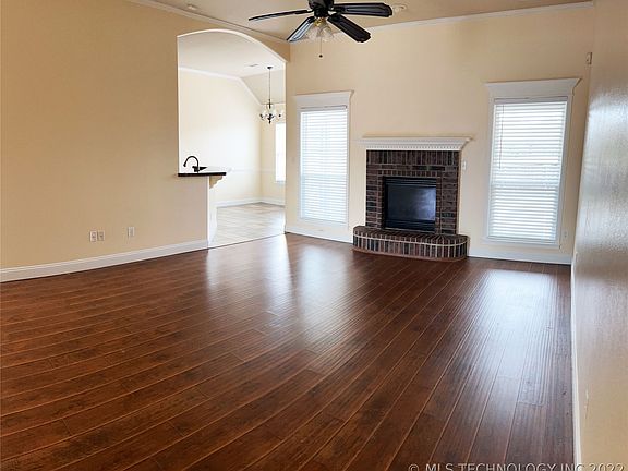 Exquisite and spacious MOVE IN ready home!!! Your new home is a traditional, single story, split floor plan with natural light and a fully fenced in yard. Located in a Cul-de-sac near the golf course and not far from Owasso 7th grade center. Quick access to Highway 169, restaurants, and shopping. This home features ample storage space, laminate floors, and ceramic tile. You will be welcomed into the home by your new front door. It also has a new back door and new blinds throughout. The house has been freshly painted inside including the garage floors. A new garage door will be installed before your closing. The garage is large enough for 2 cars to fit with extra space on the side for a workbench or storage. It has ceiling fans throughout and double sinks in both bathrooms. The primary bedroom features a separate shower and tub as well as separate walk-in closets. All FOUR bedrooms have spacious closets. The back patio has been extended and is partially covered. There is a large storage shed and raised gardening beds. This home is great for anyone who is looking for that extra space to call home. Owner financing options available with M&M Capital Investments LLC. AC/Heater new in 2019.