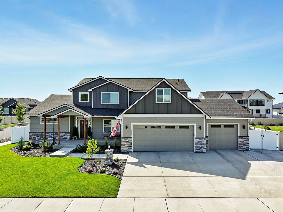 Experience modern luxury in this exceptional 4-bed, 3-bath Five Mile Estates home. Built in 2022, this 2,902 sq ft residence impresses with soaring ceilings, a striking gas fireplace, and wall-to-wall windows dressed with electric blinds. The gourmet kitchen is a chef’s dream with quartz counters, stainless appliances, gas range, walk-in pantry & oversized island. Retreat to the spa-inspired primary suite with dual vanities, soaking tub & walk-in closet. Upstairs offers two spacious bedrooms, a full bath & loft/family room. The 0.31-acre corner lot is fully landscaped and enhanced with Govee exterior lighting, a covered patio, fenced yard & 198 sq ft shop with 6 ft lean-to. Designed for convenience with RV parking, EV charger, 3+ car garage, main floor laundry, tankless water heater & high-efficiency HVAC. Located in the coveted Mead School District, this home blends elegance, comfort & functionality for the ultimate North Spokane lifestyle.