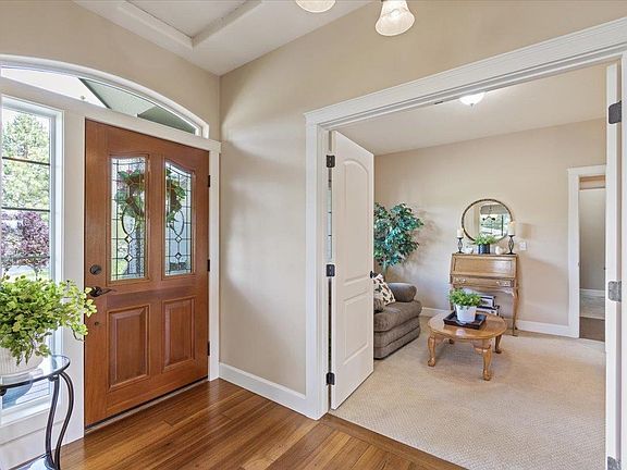 Wonderful 2 story on 5+ acres nestled at the end of a private lane! Hickory engineered wood floors, Huntwood Hickory cabinets, Cascade windows, crown molding, granite countertops, custom Roman shades on most windows, stainless appliances, French doors off great room to covered deck, main floor primary suite, office and laundry room, finished lower level with wet bar, great room, pool table area, hobby room and extra bdrm & bath. 3 car oversized garage along with separate garden shed. Fenced backyard, covered patio, paver patio and circular drive for extra parking. 36 x 60 shop with wood stove & second story for extra storage. Electric boiler for radiant hot water heat, central A/C, soft water tank, new well pump, 20+ GPM well, Hardiplank siding on house and shop, beautiful landscaping front and back! Horses okay!