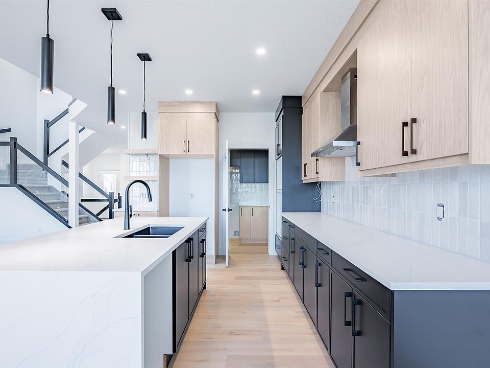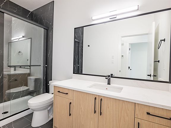 Welcome to this home in Collage Woods designed for multi-generational living and modern comfort. This beautiful home begins with a highly versatile main floor, featuring a convenient bedroom and a full bathroom—perfect for hosting guests or creating a main-floor office. The heart of the home is a show-stopping modern kitchen, complete with a practical spice kitchen, upgraded ceiling-height cabinetry, and elegant waterfall quartz countertops. It flows seamlessly into the open-to-above great room, accentuated by a stunning feature wall. Upstairs, you will find four generously sized bedrooms. The master suite is a true retreat, boasting a dramatic drop ceiling and a luxurious 5-piece ensuite bathroom. A spacious bonus room provides the perfect loft for a media center or play area. The unfinished basement awaits your personal touch. September Possession, pictures are from similar homes. Exact finishes/colors vary.