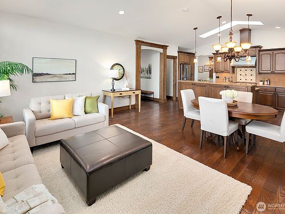Nestled in Edmonds coveted Seaview Neighborhood, this 2,880 SqFt zero-step rambler offers beautiful Puget Sound views and an unbeatable location near downtown Edmonds. Built in 2011 the home features an open-concept layout with versatile 4th bedroom/office. Oversized primary suite boasts ensuite w/ walk-in closet. Freshly updated with new carpet and paint, the home feels warm and inviting. Enjoy an outdoor sunroom w/ gas fireplace and covered patio for year-round outdoor enjoyment. Extra deep garage with space for multiple vehicles or hobbies/workshop. Situated at the end of a quiet, private drive, this home offers serene living close to parks, schools, and amenities. Don't miss this exceptional opportunity!
