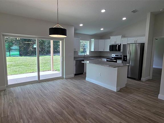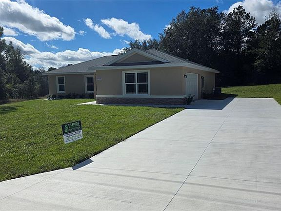 Under Construction. Welcome to your brand-new home in Citrus Springs, where quality craftsmanship meets everyday comfort. This thoughtfully designed 3-bedroom, 2-bath residence is newly completed and built with care by Empire Construction. From top to bottom, it offers stylish upgrades, energy efficiency, and a layout that suits today’s lifestyle. As you enter, you’re greeted by tall ceilings and an open floor plan that makes the most of every square foot. The main living area connects effortlessly to the kitchen and dining space, creating a perfect setup for gathering with friends or enjoying quiet evenings at home. The kitchen is beautifully finished with granite counters, soft-close cabinets, and sleek hardware, all brought together by durable luxury vinyl flooring that runs throughout the home. Natural light pours in through energy-efficient windows and a wide sliding glass door, which leads to a covered patio in the backyard. It’s the ideal spot to relax, grill out, or enjoy Florida’s sunshine in peace. The owner’s suite is set apart from the guest rooms for privacy and includes elegant ceiling details, dual sinks, and a tiled walk-in shower. Behind the scenes, this home is just as impressive. Upgraded insulation in both walls and ceiling helps keep utility bills low. Underground electrical service adds to the clean look of the property, and a meter/main combo provides added convenience for future expansion. A spacious two-car garage with a side access door offers additional storage and functionality. This home is perfectly positioned within a short drive to local rivers, springs, and parks, not to mention shopping, dining, and new retail centers nearby. It’s the kind of place that gives you room to breathe without being far from the essentials. If you’re looking for something new, well built, and ready to go, this one deserves your attention. Builder incentives and closing cost assistance may be available, reach out for details and come see the difference for yourself. Homes like this don’t stay on the market long.