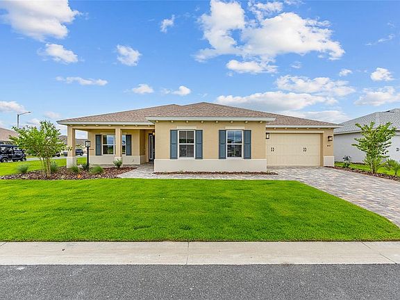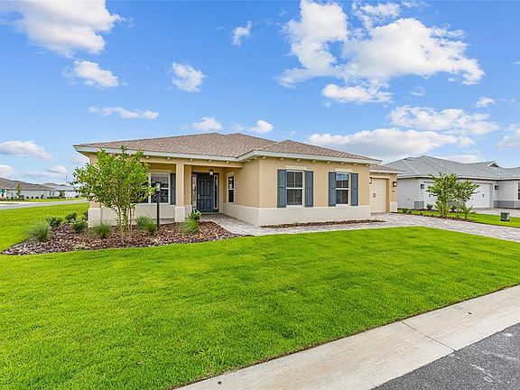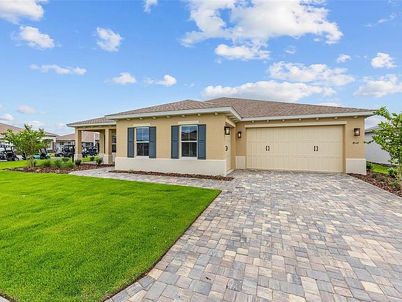 Welcome to the Montgomery model, situated on a desirable corner lot in the Balfour community at On Top of the World. This thoughtfully designed home offers 2 bedrooms, 2.5 bathrooms, a flex room, and a 3-car garage, blending style, comfort, and functionality. The exterior features a paver driveway and walkway, adding both charm and curb appeal. Inside, you’ll find tile flooring throughout and a flex room with French doors, ideal for a home office or den. The open living area features a 4-panel sliding glass door leading to the screened lanai, along with four floor-to-ceiling windows in the dining and kitchen area that flood the space with natural light. The gourmet kitchen is sure to impress with premium white staggered cabinets with crown molding, backsplash, under-cabinet lighting, built-in oven and microwave, 5-burner cooktop with range hood, walk-in pantry, and an oversized island. The private owner’s suite offers a 3-panel window overlooking the backyard, a walk-in closet, and a spa-like en suite with a double vanity sink with quartz counters, a zero-entry tiled shower with a built-in bench, and a linen closet. The guest bedroom includes a spacious closet and its own en suite with a quartz vanity and a tiled tub/shower combination, making it perfect for visitors. With modern finishes, upgraded features, and an open layout designed for today’s lifestyle, this Montgomery model is ready to welcome you home. In addition to this beautifully designed home, residents of On Top of the World enjoy access to world-class amenities including championship golf courses, state-of-the-art fitness centers, swimming pools, pickleball and tennis courts, walking trails, and a wide variety of clubs and social activities—offering an unmatched active-adult lifestyle.