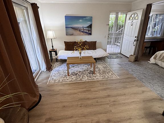Available Now! Welcome home to this beautiful, junior 1-bedroom/studio. May be leased furnished, or un-furnished. This corner-end unit is private and upgraded with clean new finishes including granite counter tops, luxury vinyl plank floors and tile. Matching stainless appliances make cooking a breeze. And the community has a large wonderful pool, hot tub, and fitness center. Community laundry with lots of well-maintained machines. You are only moments away from Trader Joe's, AMC theaters, Whole foods, and plenty of restaurants. La Jolla and UCSD are also just minutes away!! 1 assigned carport parking space included. Small pets under 40lbs may be considered with $45/month pet rent. Resident shall pay SDGE. Water & trash are included. Security deposit is the same as 1 month's rent. To qualify credit shall be above 650, documented proof of income exceeding 2.5X the rent, and a clean reference history that is verifiable for previous 3 years.