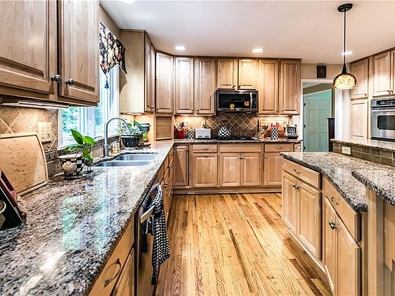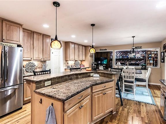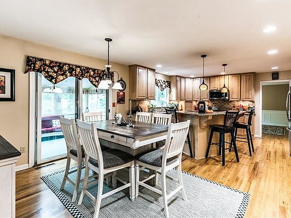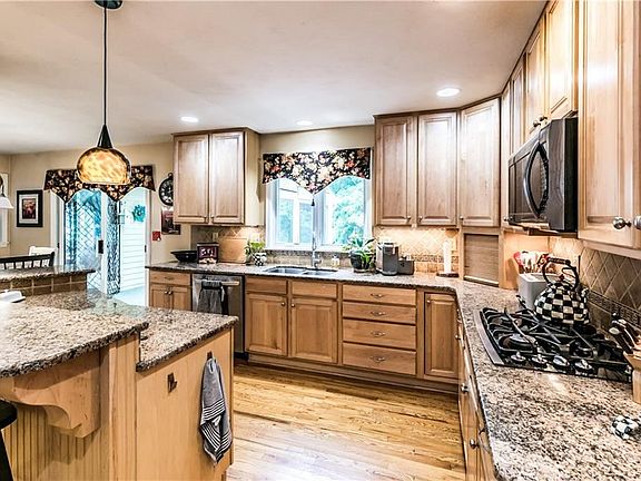 This Beautiful 5 bedroom, 3 bath Colonial home is located on over an 1/2 acre lot in the popular "Eagle View" neighborhood which is close to Fayetteville-Manlius schools, Syracuse hospitals, parks, shopping, and major highways. The first floor features an open an inviting floor plan that includes an eat-in gourmet kitchen with granite counters, hardwood floors, and abundant counter and cabinet space, a large family room with vaulted ceilings, skylights for plenty of natural light, built in bookcases, and a brick wood burning fireplace, a formal dining room, a formal living room or 5th bedroom option, a 1st floor laundry, a renovated 2 story foyer, a sun room, and a full bath. The second floor offers a huge owners bedroom with a fireplace, a renovated owners bathroom, another full bathroom, and 3 other good sized bedrooms. There is also a finished walk out basement. Refinished hardwood floors throughout. The exterior provides professional landscaping, a calming stream, 2.5 car garage, and a covered front porch. Newer roof, furnace, AC, and on demand hot water heater.