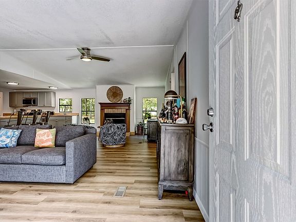 Welcome to your slice of paradise! Relax and soak in the peaceful surroundings on your oversized front deck. Inside this professionally remodeled gem, you'll find open concept living with a split bedroom floor plan, perfect for entertaining! Upgrades include LVT flooring, water heater, HVAC, electrical panel, water pump, plumbing lines, exterior doors, lighting, fans, kitchen cabinets w/ butcher block countertops, and stainless steel appliances to include a gas range. Bathrooms updated with stylish vanities, mirrors, lighting, and fixtures. Spread out and enjoy the ample space on over an acre of land zoned open rural. There's plenty of room to store your toys, equipment, and vehicles with additional storage (20'x10' building), separate garage (24'x12'), and detached carport (20'x20'). Raising chickens? You're in luck! Property includes chicken coop and run, waiting for your feathered friends! Transferable termite bond and motivated seller! Call today!