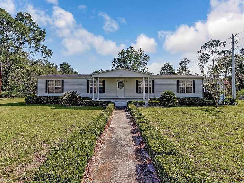 This beautiful large corner lot is a rare find located less than a mile from the communities boat landing. Spacious mobile home with an attached one car garage situated on over an acre with mature pecan trees, plum tree and grapevines. Roof is only 5 years old. Two separate out buildings ideal for someone needing a work shop! Plenty of room here for recreational vehicles and boats. Get away from the from the traffic and enjoy quiet days on your own little piece of simplicity!