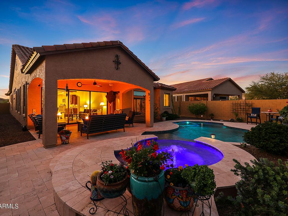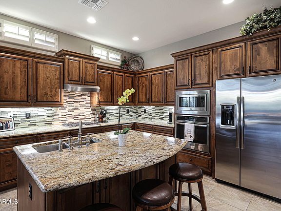This Gorgeous home is located in Desirable Mountain Bridge, a NE Mesa Resort-Style Community and sits on a Premium Lot with Breath-Taking Mountain Views of Usery! This 3 Bed/3Bath model with an Office/Den was expanded to include a 4ft Extension in the Front Bedroom, an Oversized 3 Car Tandem Garage with a 4ft Extension, Beautifully Landscaped Rear-yard with a 4ft Patio Extension and a Sparkling Pool and Spa overlooking the Picturesque Setting! This coveted Blandford model features many upgrades such as Kitchen Cabinets with 4'' Crown Molding and Chocolate Glaze, Built-In Bar in Kitchen, Upgraded Kitchen Appliance Package with New Dishwasher and Garbage Disposal, Upgraded Bathrooms with Granite Countertops, Framed Vanity Mirrors and Custom Tile Work. See Improvements List in Documents Tab. Tax Record shows square footage of this home to be 2382 which does not include the four foot extension in the front Bedroom, which adds