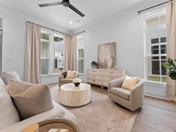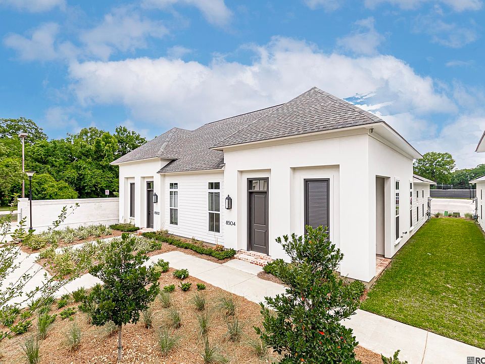 Ozetta is a community of luxury townhomes and cottages located near Old Goodwood and Mid City. This 3 bedroom, 2.5 bath townhouse has impressive 11’ ceilings with an open-concept living area and kitchen with separate dining room. The primary bedroom is located on the first level and has an en suite bath and walk-in closet. Two additional bedrooms and a full bath are located upstairs. Features include quartz countertops, recessed can lighting, an alarm system, stainless appliances including refrigerator, a mudroom bench near entry, a two-car garage and a private front porch with brick pavers. Experience low maintenance living in the heart of Baton Rouge!