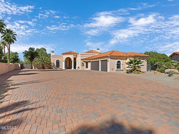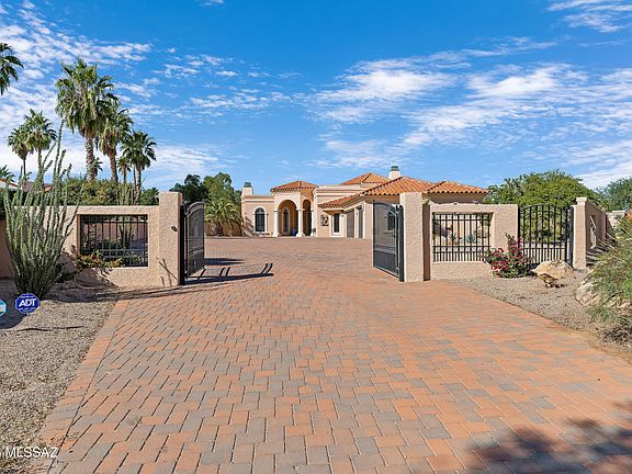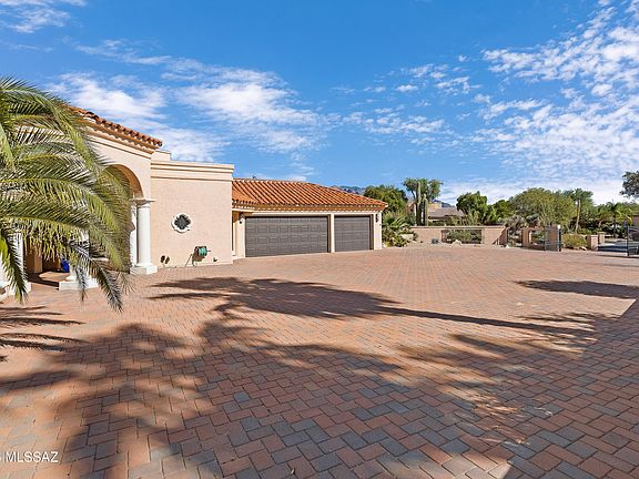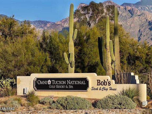 Welcome to this stunning, custom home nestled in the prestigious Nob Hill Estates of Omni Tucson National. Entering through the double copper doors, you'll be captivated by panoramic views framed by 20-foot ceilings and beautiful exposed wood beams in the foyer, great room, breakfast nook & front porch. This home offers warmth & ambiance with three cozy gas fireplaces, a gourmet kitchen featuring Wolf appliances & elegant granite countertops in the kitchen, baths, wet bar, & quartz inthe primary bath. Perfectly situated on the 17th green of the Desert Course, the .51-acre lot provides ample room for a future guest house. Outside, enjoy expansive travertine patios, a fire pit with bench seating, & a sparkling pool with a spa. There is even a charming orchard for fresh, seasonal fruits produce. Homes in Nob Hill are rare to find, especially one that blends style, comfort, and premier golf course living. Don't miss the chance to call this exceptional property your own! Omni Tucson National Resort & Spa offers discounted memberships to residents, please inquire at the membership desk inside the resort.