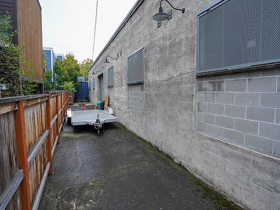 Looking for the ultimate Toy Barn within the urban environment? Here is the Letson Garage, a warehouse used as a private garage and automotive social club for decades. It is located one block from the St Johns Bridge, and just mere blocks from downtown St Johns. Recent improvements and enhancements have brought it into the modern era with lighting, HVAC, security, and seismic updates. The interior is 4200 square feet of open space, while the outside fenced yard is 800 square feet of secured parking. Inside you will find a one bedroom loft upstairs, while a matching office space on the main floor suggests a speakeasy poker room. Full bathroom with a shower, as well as laundry facilities, and a basic kitchen. Access to the side parking area and patio is through a private door. Recent improvements include period-inspired exterior lighting, seismic retrofitting, security screening for windows, a new rollup door, and extensive security system. Vehicle lifts and automotive artwork available for separate purchase. CN2 zoning allows for multiple uses, including a mix of commercial and residential options, as per Chapter 33.130, contact the City of Portland for all land use questions.