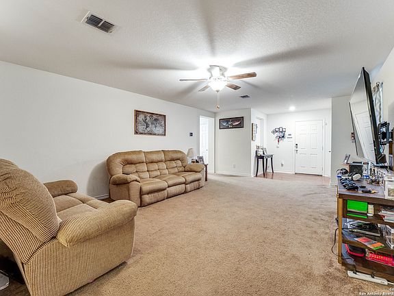 Welcome to your dream home-where space, style, and location come together perfectly! Located in a quiet cul-de-sac with no drive-through traffic, this exceptional 5-bedroom, 3.5-bath residence offers the privacy and space you've been looking for. Step inside to discover 2 living areas, ideal for both everyday comfort and effortless entertaining. The floor plan includes an upstairs loft, perfect for a playroom, media center, or home office. The primary suite is conveniently located downstairs, offering a peaceful retreat with added privacy and ease of access. The mother-in-law suite and a second living area provide ultimate flexibility-whether you're accommodating guests, creating a private workspace, or designing a cozy lounge. Every detail in this home is designed to help you thrive. Perfect for large families, this spacious layout ensures everyone has room to relax, work, and play. Conveniently located near H-E-B, Walmart, and a wide range of popular dining establishments, daily errands and nights out are always within easy reach. Enjoy outdoor living just minutes away at Miller's Pond Park, one of San Antonio's hidden gems. This beautiful 42-acre park features a peaceful pond ideal for fishing, a 1-mile walking trail, shaded picnic areas, playgrounds, and basketball courts-offering recreation for all ages. Last but definitely not least, this is a VA Assumable loan currently at 3.375 Interest Rate! Don't miss out on this opportunity and schedule a showing today!