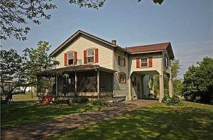 Currently grandfathered as multi-family, but zoned commercial. Main house is 2200 sqft, 4 bed 1.5 bath -extraordinarily well kept 19th century farmstead featuring original mint-condition oak woodwork (grand staircase, columns, and floor moldings, leaded glass) new roof, furnace and AC. 2nd building is 1bed, 1bath 1000 sqft converted barn rental with more space on 2nd floor. 30 x 30 garage in rear with hard-pack driveway beneath grass. 4.9 acres: frontage and first 300' of depth zoned commercial, back acreage is zoned SFR. Motivated seller will hold mortgage with 25% down to th "right buyer".