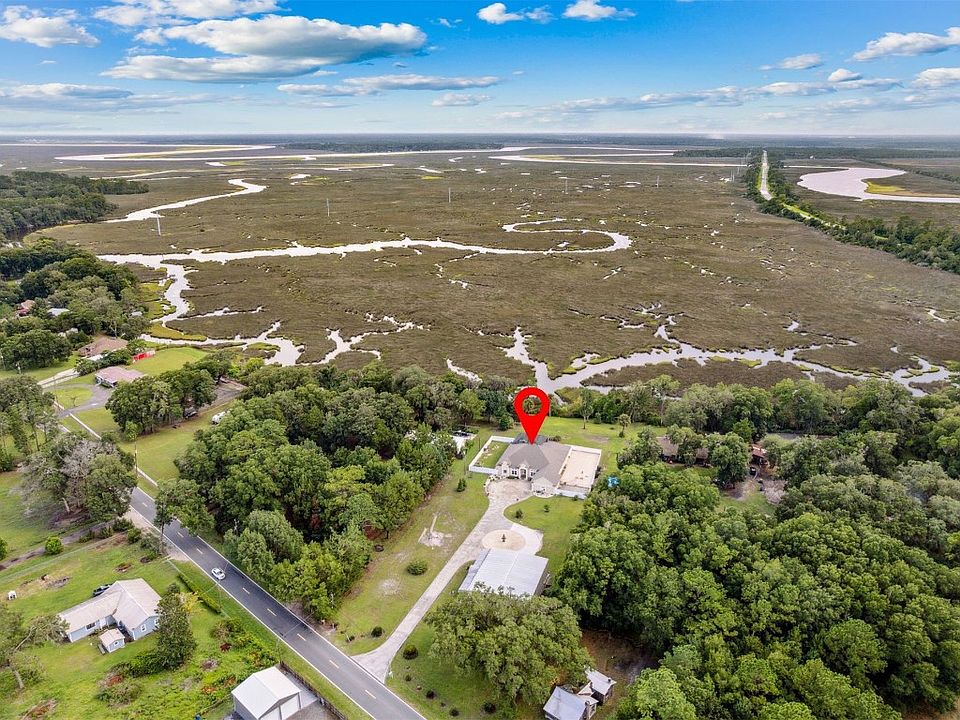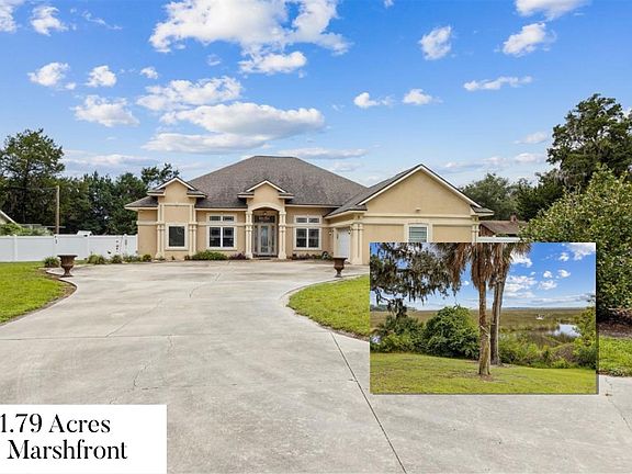 LOVE WHERE YOU LIVE MARSH-FRONT! This CONCRETE BLOCK home has it all! 2 MILE VIEWS, CAR BUILDING, POOL & SPA, 1.79 ACRES!! Built by ICI Homes, this exceptional single-family residence offers breathtaking marsh views and includes a state-of-the-art steel frame outbuilding, perfect for your car collection or workshop. 3BR/3BA + OFFICE, 3121 sq' interior boasts an open floor plan with engineered wood floors, elegant crown molding, and soaring 12FT CEILINGS. The kitchen is a chef’s dream, with a Thermador gas range, GE Monogram refrigerator, center island with sink, and granite countertops. Waterfront views from every room bordering lanai. The split layout provides seamless access to the pool area from both the great room and the primary bedroom. OUTDOOR LIVING is enhanced by a pool area with pavers and a screened lanai. Situated on Garner Creek, this marsh-front property offers direct access to the Nassau River on a tidal creek. KEY FEATURES: stucco exterior with ICF construction, tankless water heater, privacy fenced side yards, DEEP WELL, Custom kitchen w/GAS COOKING, oversized laundry room, ROOF 2YRS NEW, & generously sized owner suite w/2 separate walk-in owner closets. Don’t miss the opportunity to experience this unique property. Easy access to Hwy 17 & I-95. Schedule your private tour!