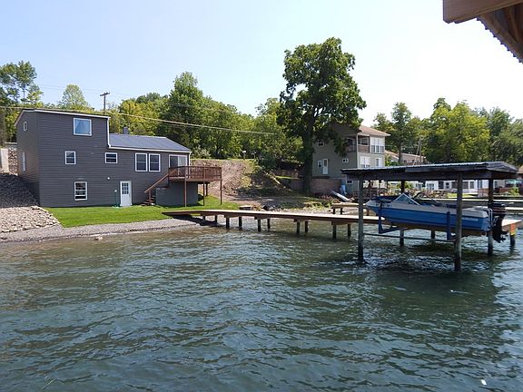 YEAR ROUND SENECA LAKE HOME! Are you looking for your own little piece of Fingerlakes paradise? Here is a fully renovated & gorgeous 3 bedroom 2 full bath lake front home! Keep it all to yourself or use as a vacation rental & make $$$! 1st floor boasts an open concept, 2 bedrooms, kitchen, bath & laundry. The entire 2nd floor is a beautiful master suite! Outdoors enjoy the deck space, amazing views & nice beach area. The dock is new and the boat lift is electric! The basement provides lots of storage space! All the new furnishings in the home convey! Boat does not convey.