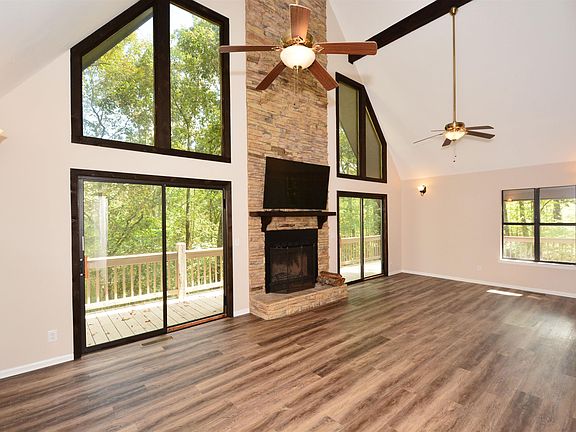 This stunning home on 7+ acres in the Pinson area, offers a perfect blend of modern elegance & natural beauty. The open floor plan features ceilings of 20+ in the den, complemented by a cozy stone wood burning fireplace & an abundance of windows that flood the space with natural light. The kitchen boasts stylish granite countertops and backsplash enhancing its contemporary appeal. This unique property provides a private retreat in Birmingham, free from HOA restrictions. The spacious primary suite on the man level big enough for a sitting area. The unfinished basement presents ample opportunities for expansion. Enjoy the serene surroundings with a wraparound porch nestled among the trees. Make this home a true sanctuary.
