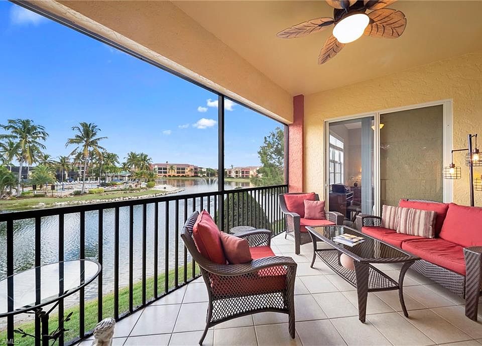 HERE IS THE VIEW YOU REALLY WANT AND DESERVE! Come discover extraordinary resort-style living in this exquisite TURNKEY FURNISHED 2-bedroom condo set within the prestigious Club at Rapallo. Designed with understated luxury in mind, this residence offers a refined blend of elegance, comfort and effortless sophistication. Step inside to an inviting open concept leisure room, noticing the gorgeous wood flooring, built-in bookshelves, high ceilings, custom moldings and abundant natural light. The gourmet kitchen features upgraded cabinetry, granite countertops, stainless-steel appliances, above cabinet lighting and roomy breakfast bar. The primary suite offers sweeping views, sizable closets and en suite bathroom with dual sinks and large shower. The screened lanai is the WOW-FACTOR, why would you settle for less? Enjoy panoramic views of the main community lake and amenity peninsula. Step outside and experience the best of Rapallo living - lagoon-style pools, a full fitness center, walking and biking paths, har-tru-tennis courts, botanical gardens and a friendly social scene. All of this tucked inside a secure, Mediterranean-inspired community just minutes from Coconut Point's shopping and dining. A comfortable, meticulously maintained and fully appointed home in a truly special Estero community. Ready to start enjoying the Florida lifestyle?