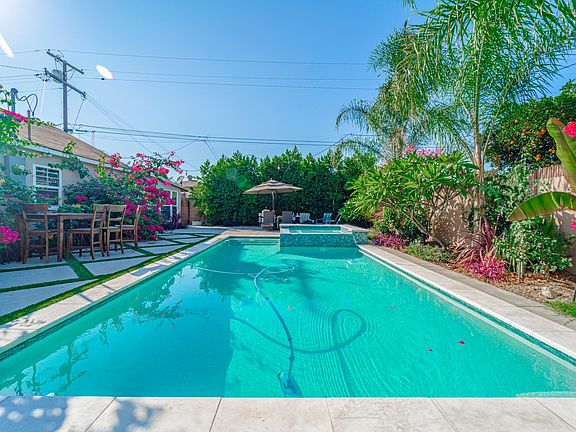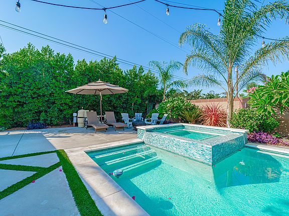 Beautiful newly renovated pool home for rent! 4 bedroom, 2 baths plus a den on a quiet cul de sac street. Large detached 2 car garage and a long driveway with plenty of parking. Beautiful lush tropical landscaping with a resort like atmosphere in the spacious backyard with a private pool and jacuzzi. Modern and remodeled kitchen with quartz countertops and modern white cabinets with gray backsplash. Stainless steel stove, dishwasher, microwave and farm house sink included. Beautiful hardwood floors and tile flooring in kitchen and baths. Inside laundry with washer and dryer. All utilities to paid by tenant except pool maintenance, gardener and trash. Rental insurance required. Owner pays for Gardener, Pool and Trash Collection. Tenant to pay al other utilities. No smoking.